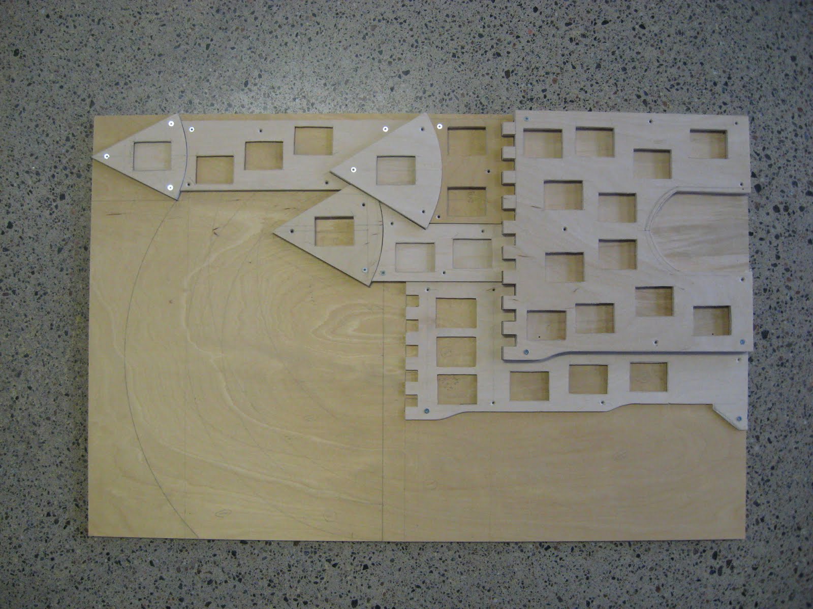 The castle was finished in good time (of course!). Cutting the individual pieces of plywood was fairly trivial: