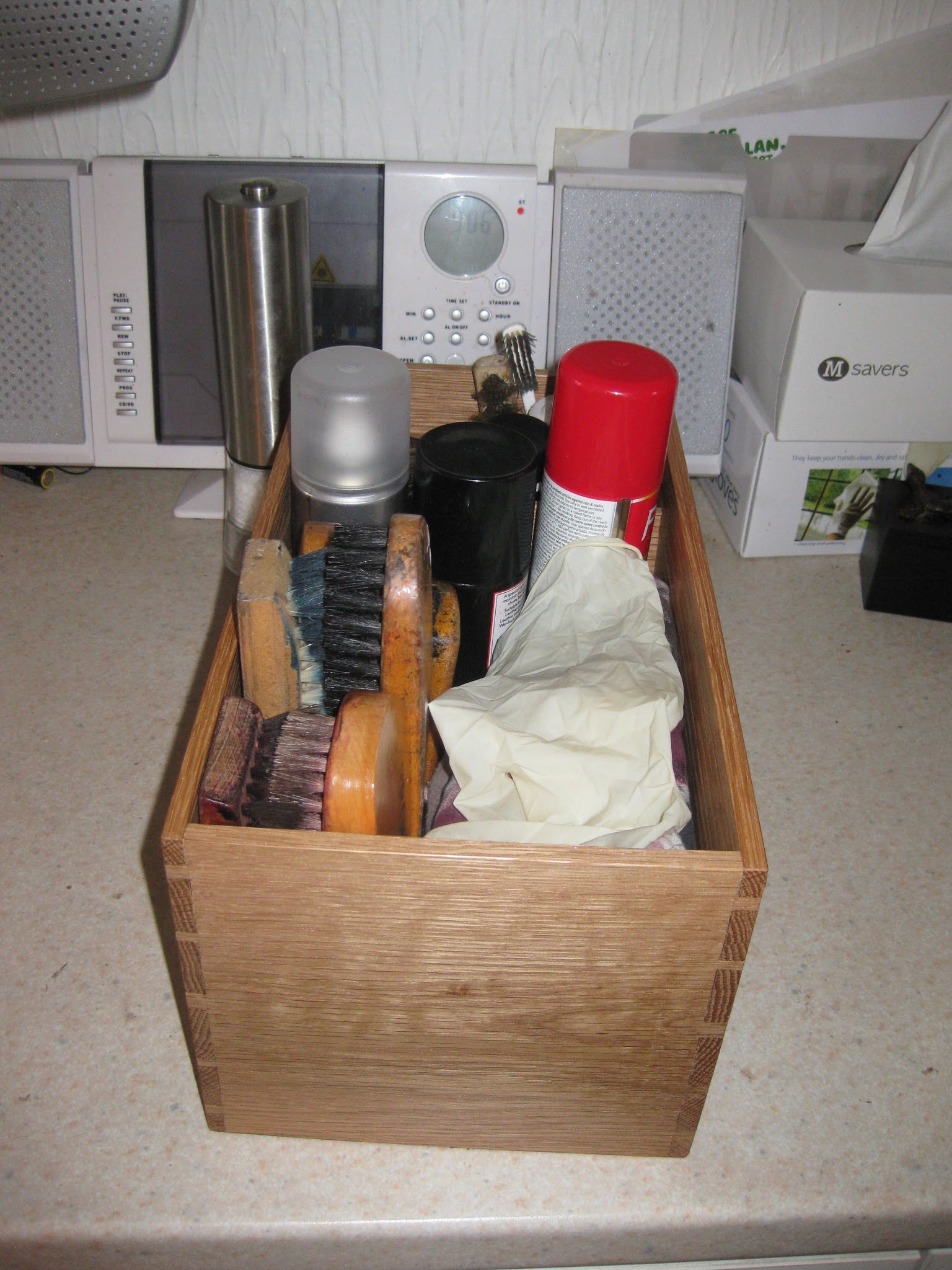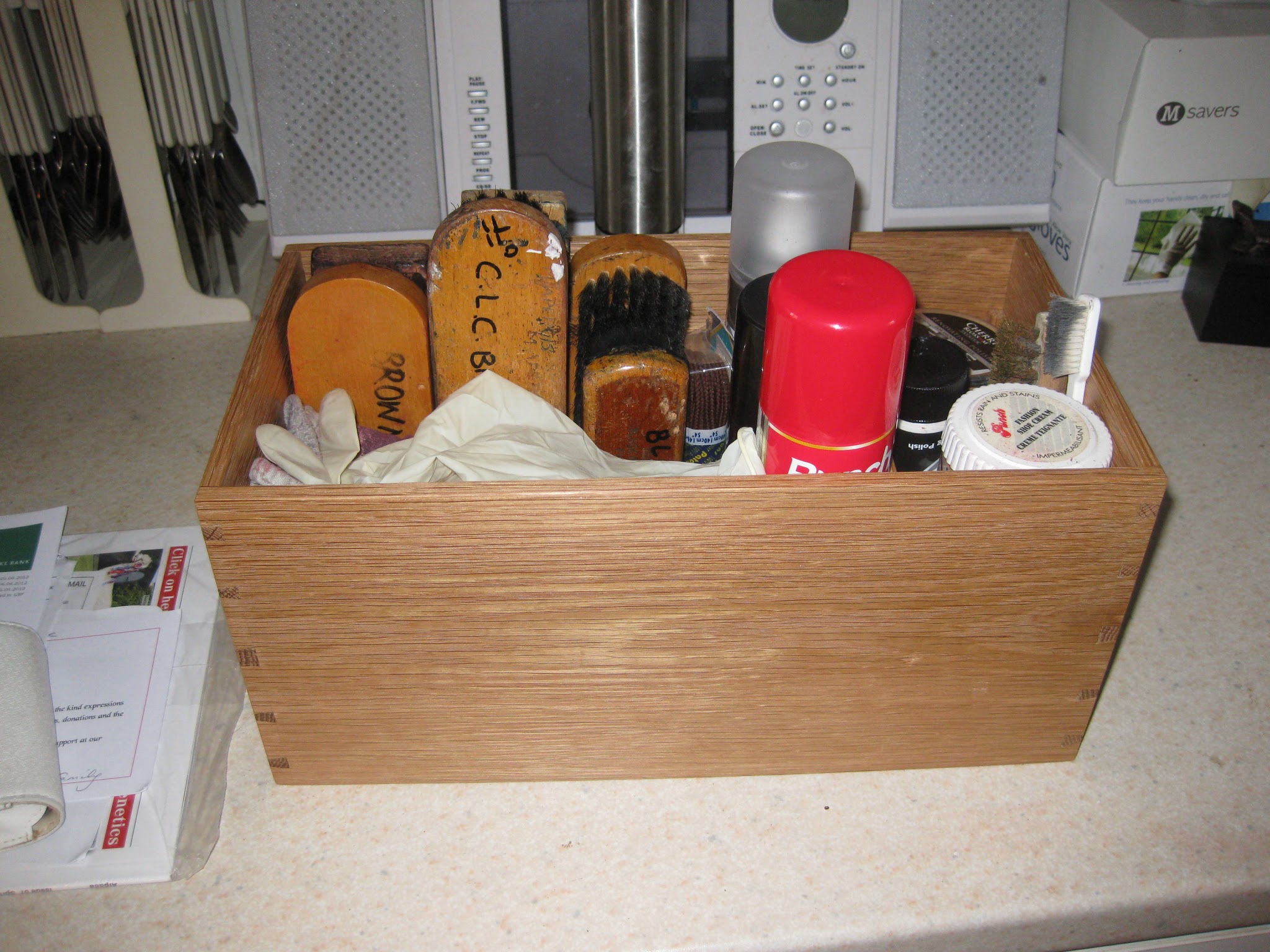 The box was finished on time, and delivered to my Mum when my folks visited last month. The stages of production were: