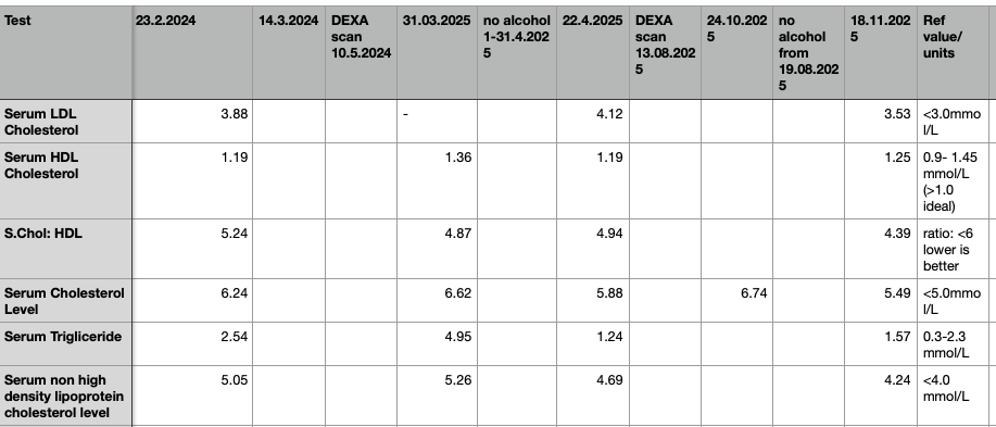 Back on 31 March, my triglycerides were so high the lab couldn’t even calculate LDL. After just three weeks without alcohol, everything had improved dramatically by 22 April.