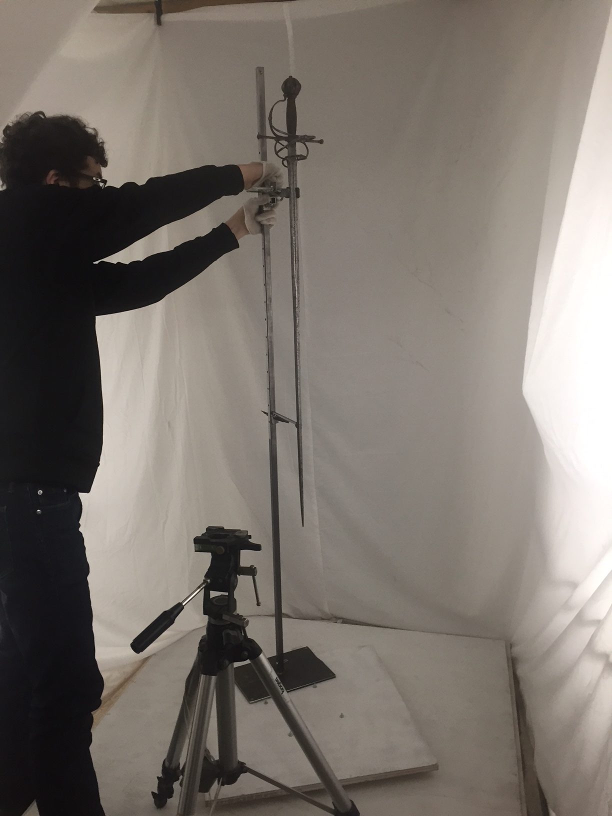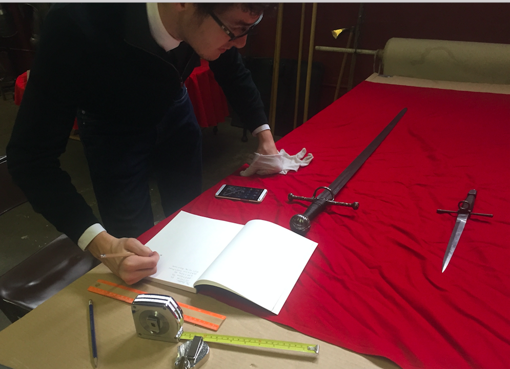 In short, they will be measuring swords and pieces of armour, and making 3D models (you can see an example here).