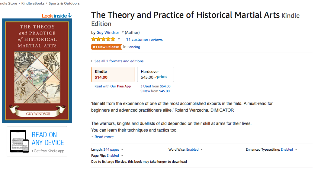 Comments like this are what authors live for. My new book The Theory and Practice of Historical Martial Arts has picked up eleven five star reviews on Amazon.com in its first week in the wild. I couldn't be happier. The reviews come from beginners and highly experienced practitioners, which suggests that the book does what I designed it to do: to encapsulate my experience for the benefit of the entire community.