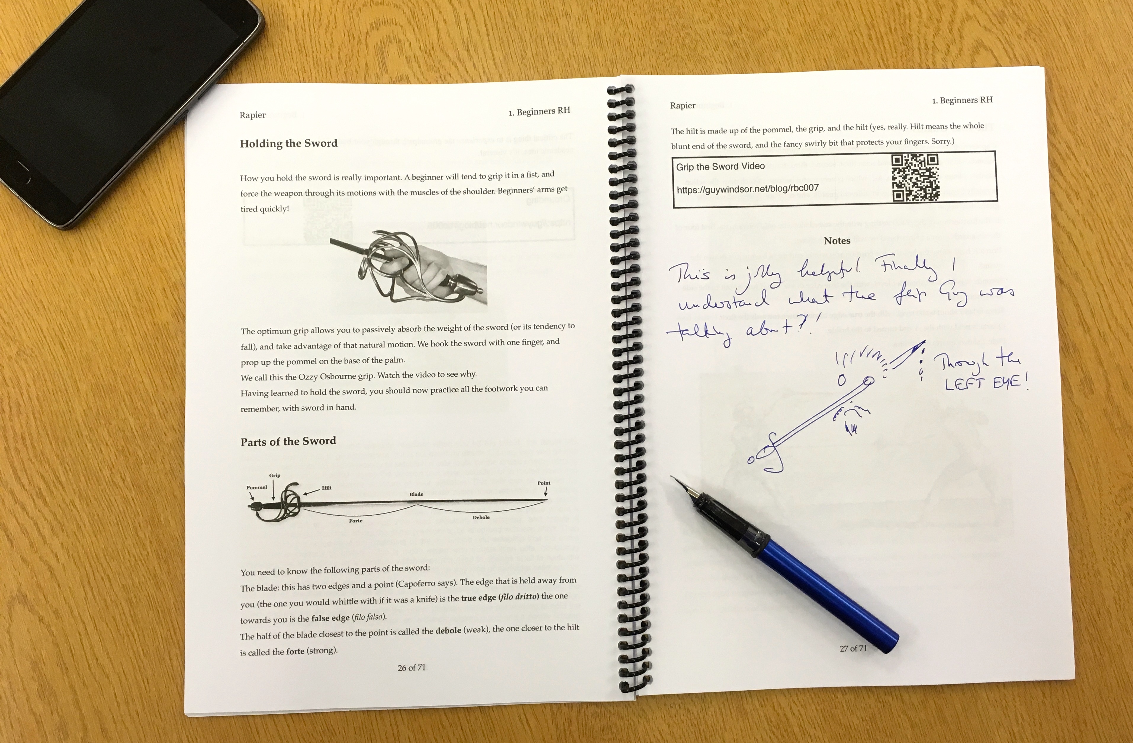 I’m working on the assumption that this format will not work for everyone: some will just prefer proper books, and some just want 100% video. But I think there is a large number of people between those two extremes for whom this will be a game-changer in terms of learning swordsmanship without a formal teacher in the room.