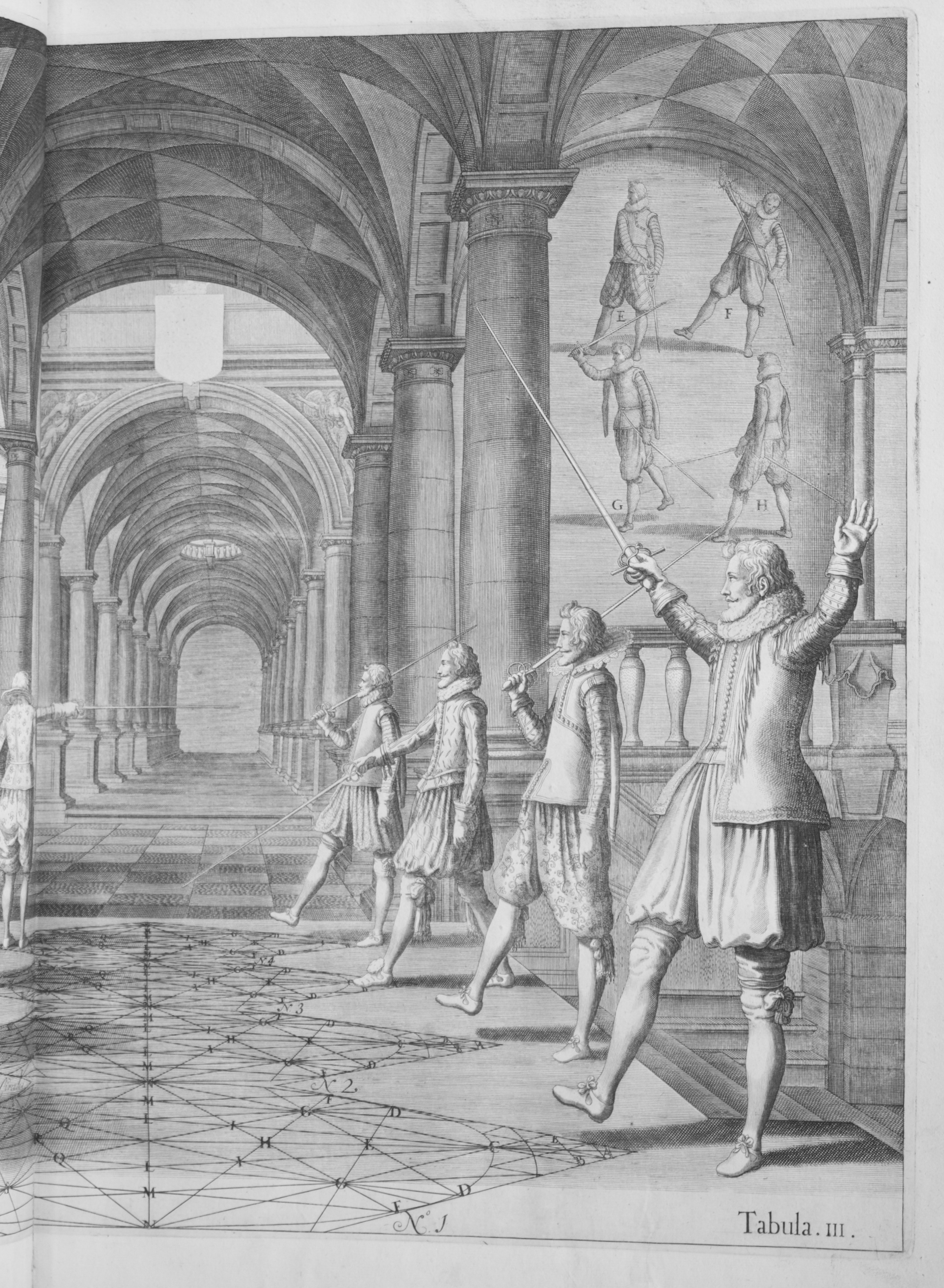 Domenico Angelo covers the draw briefly, in his definitive l’Ecole des Armes (1763). I use “definitive” advisedly: in Diderot’s Encyclopedie, the first true Encyclopedia ever compiled (between 1750 and 1772), the entry on fencing is simply a complete reproduction of Angelo’s book. Malcolm Fare (owner of the copy of Thibault photographed above, and proprietor of the National Fencing Museum) notes that “Diderot’s Escrime section, although undated, is believed to have been published in 1765 (see the University of Michigan’s translation project, which identifies the section as being included in vol. 4, 1765), 2 years after the first appearance of L’Ecole des Armes.” (Private correspondence, June 7th 2016.)