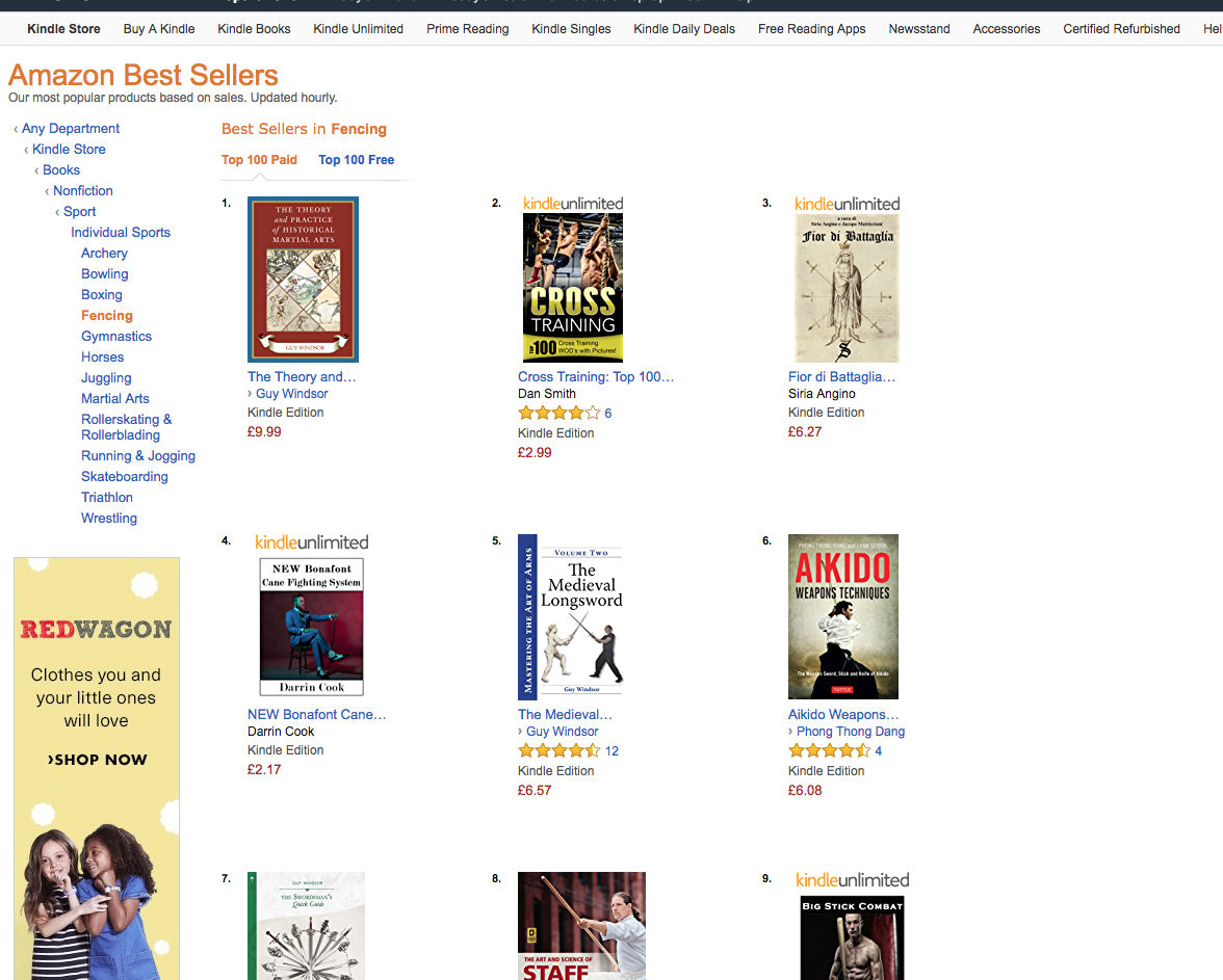 7. Three books in the Amazon Bestseller rankings in the category Fencing
