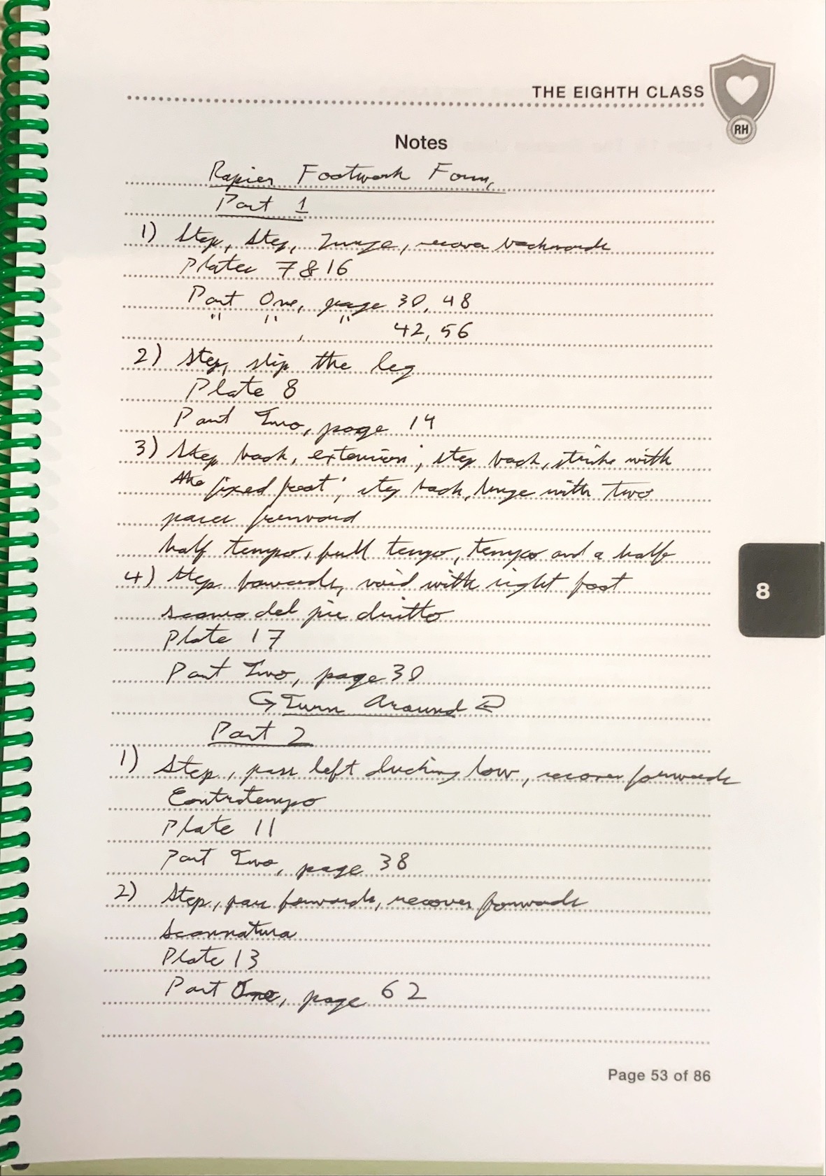 It is hugely satisfying for an author to see their work put to work. I received an email recently from Anthony Klon, who is using my Rapier Workbooks. He described how he's using the area for notes to make cross-referencing the steps of the Rapier Footwork form with the translation he's using.