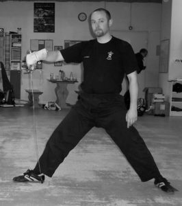 I then turned my back foot, and the sword bent: the increase in the distance was about 10cm, or 4″.