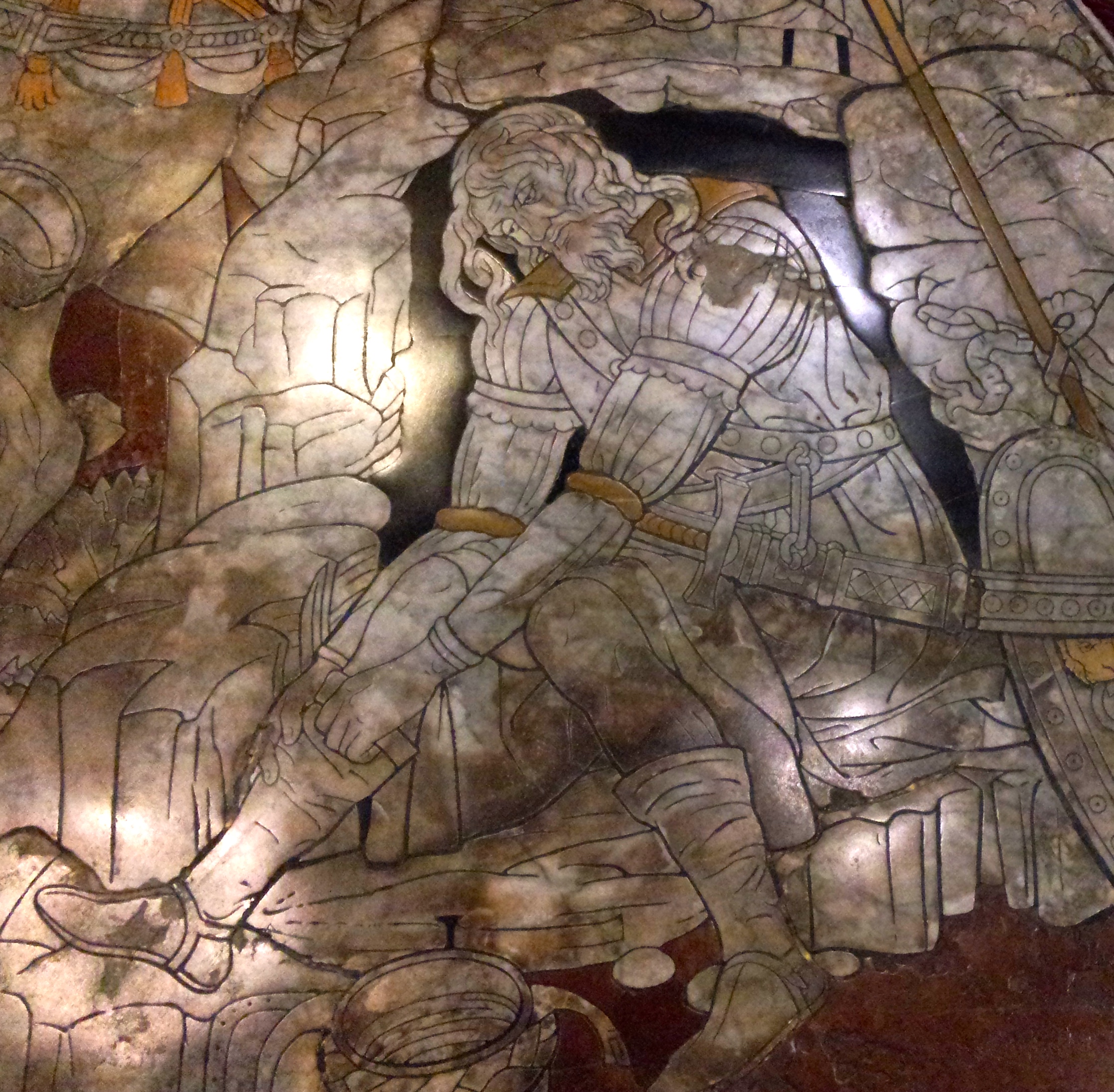 (This was my phone doing its best in low light). Stibbert could have worn it if he wanted to. Fortunately for us, he had his own suit of armour, in which he fought his chums. Yes, he was one of us!