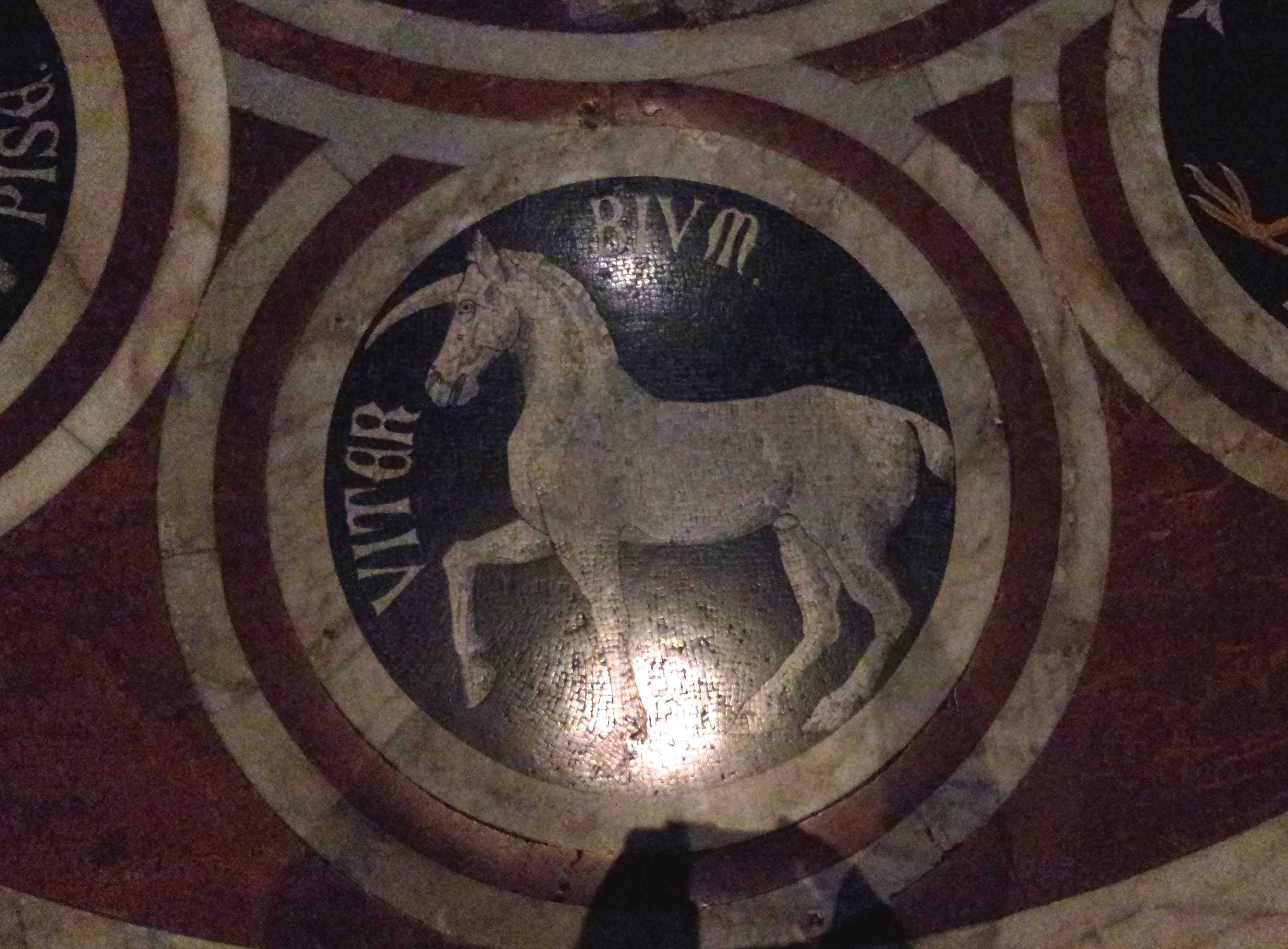 Sure, when it’s done in stone, on the floor, it gets some attention. Roman mosaics get some credit. Medieval mosaics get more, especially if Niccola or his son Giovanni Pisano had a hand in it, like this fabulous treatment of the Massacre of the Innocents on the floor in the Duomo of Siena (a building so fabulous that I will not even try to describe it. You wouldn’t believe me).